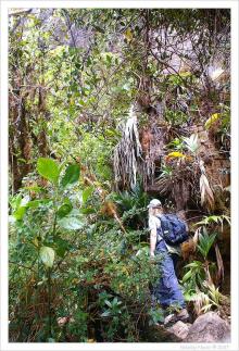 Тропа то круто лезет вверх, то траверсирует склон, а иногда и резко уходит вниз, обходя очередной скальный отрог столовой горы. Начинается последний подъем. Насквозь проходим водопад и видим «ворота Рораймы», единственное доступное для путешественника место, через которое можно попасть в «Затерянный мир».