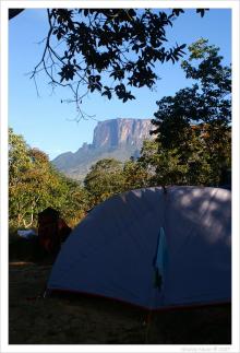В лагере подводим итоги дня. Кухня и одна палатка затерялись где-то на пути спуска с Рораймы, из еды у нас только спрятанные в хижине остатки рома. Аргентинец сбежал, носильщиков нет, Хайм с раненым Хосе остались ждать лошадь в базовом лагере, так что из представителей фирмы остался только неунывающий Павел, который считает, что все идет нормально.